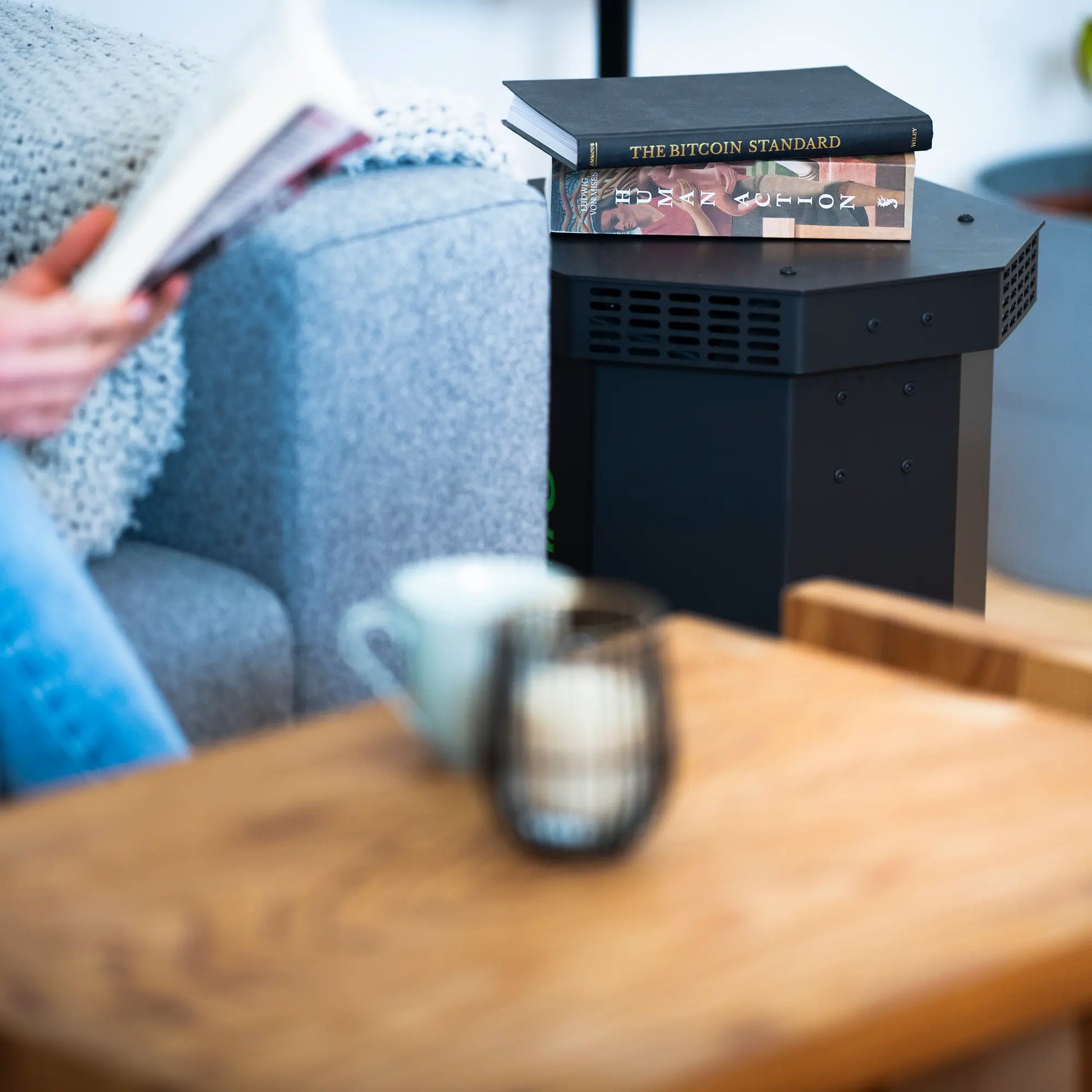 Der 21energy Ofen ist perfekt für dich, wenn du dein Zuhause heizen und gleichzeitig Bitcoin verdienen möchtest. Stell dir vor, du hast eine Heizung, die nicht nur deine Wohnung warm hält, sondern dir auch noch zusätzliches Einkommen verschafft. Der Ofen bietet eine Heizleistung von bis zu 800 Watt und kann Räume bis zu 32 m² beheizen. Dabei arbeitet er extrem leise mit weniger als 35 dB.